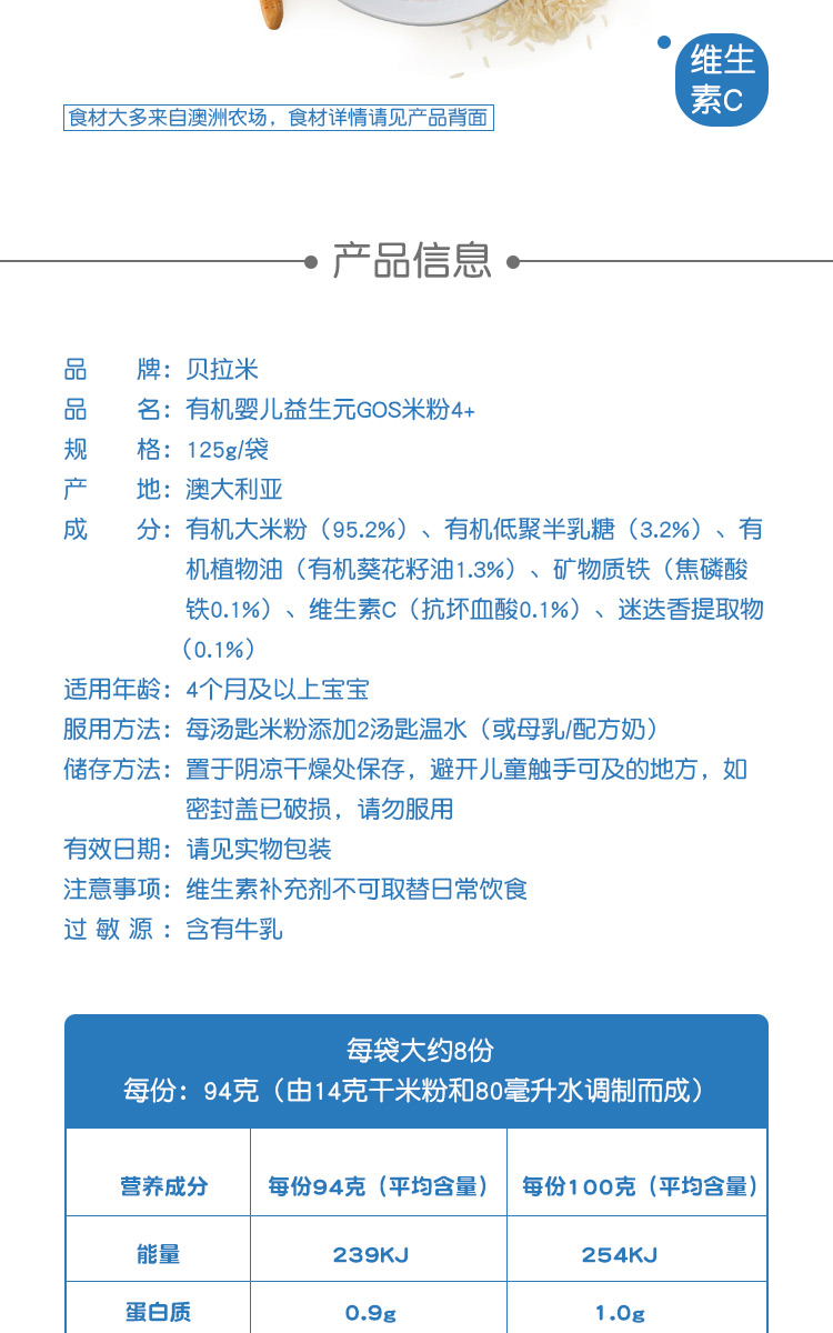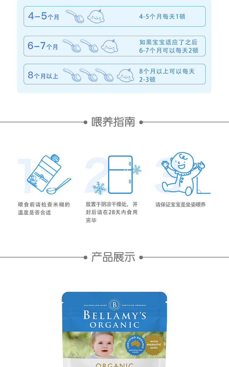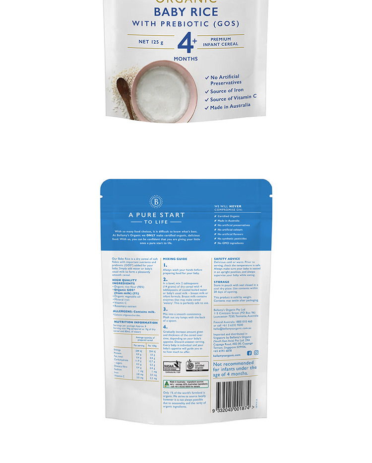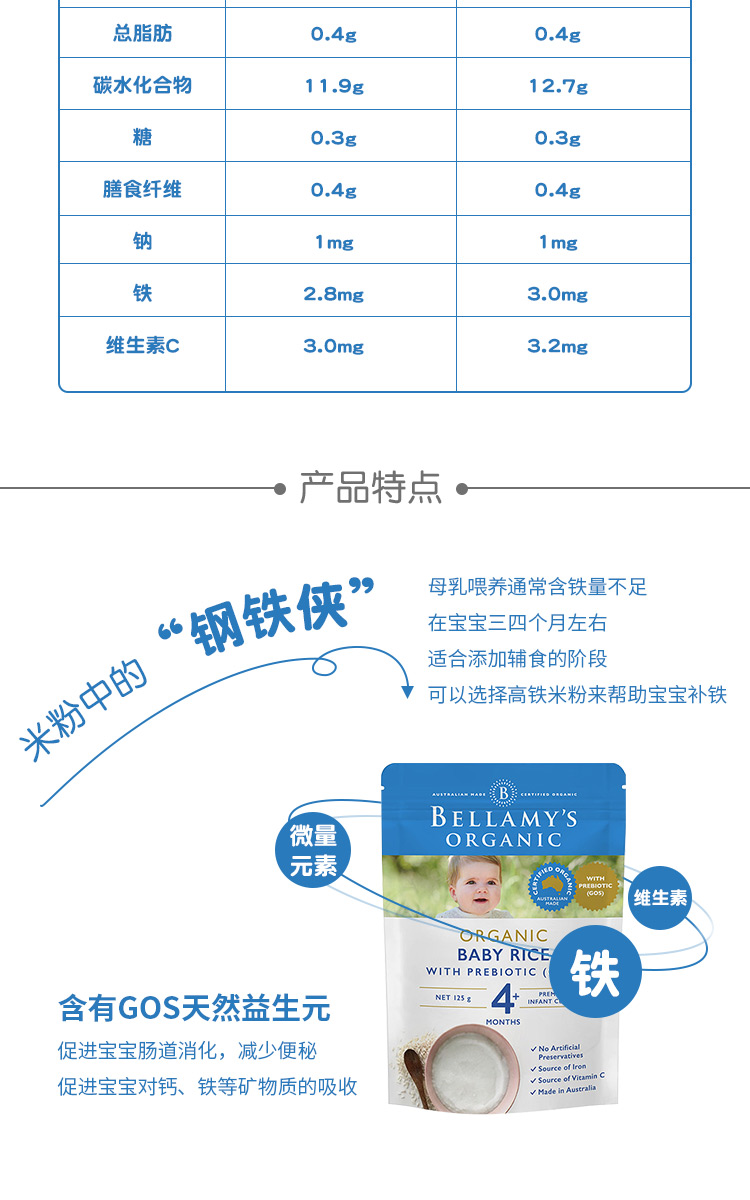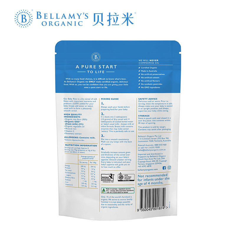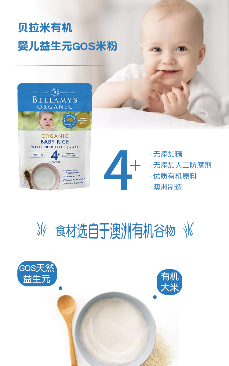 贝拉米有机婴儿苹果肉桂益生元高铁米粉米糊 6+ 苹果肉桂味