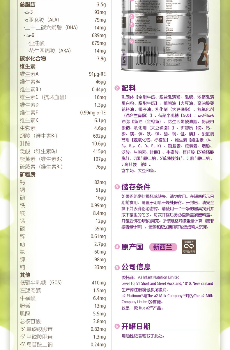 【三罐超特惠】A2婴儿奶粉三段 6罐极速发货包直邮新包装