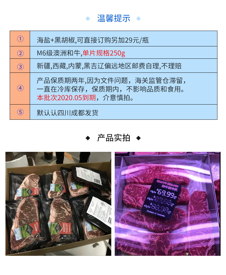 M6级澳洲和牛西冷250g/片 [ ¥0.00元]