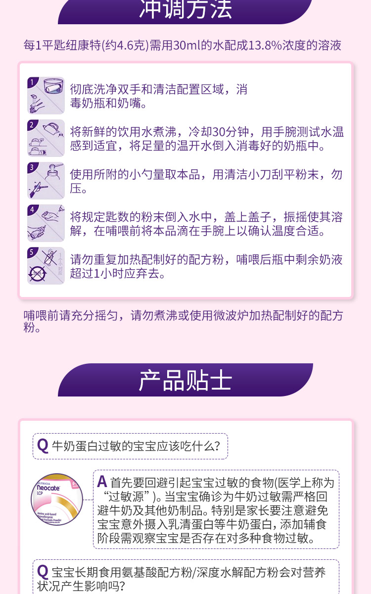 Neocate纽康特深度水解氨基酸奶粉LCP 0-12个月 400g