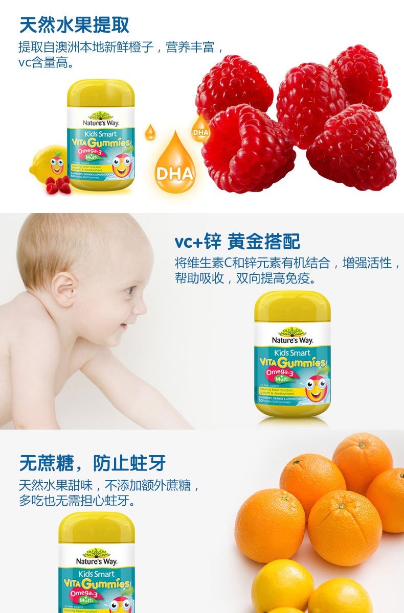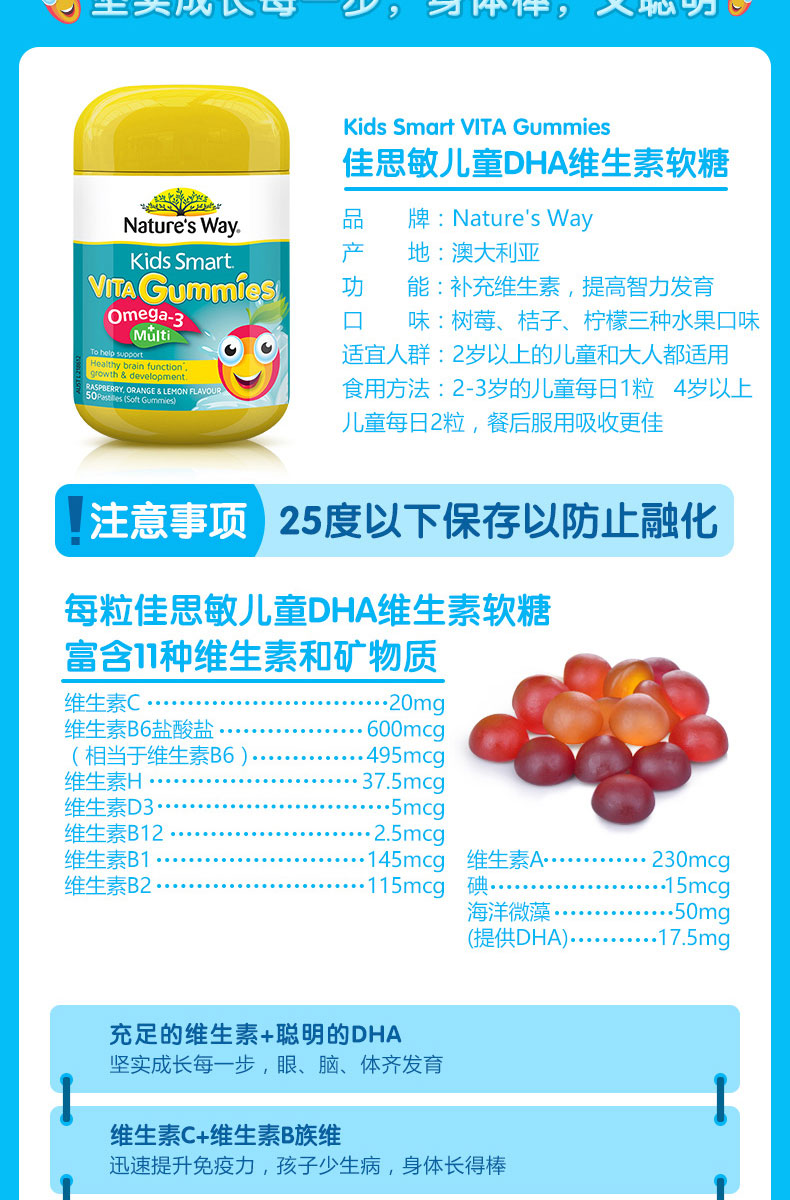 Nature's way佳思敏软糖 儿童VD+钙软糖 宝宝补钙片促钙吸收 60粒