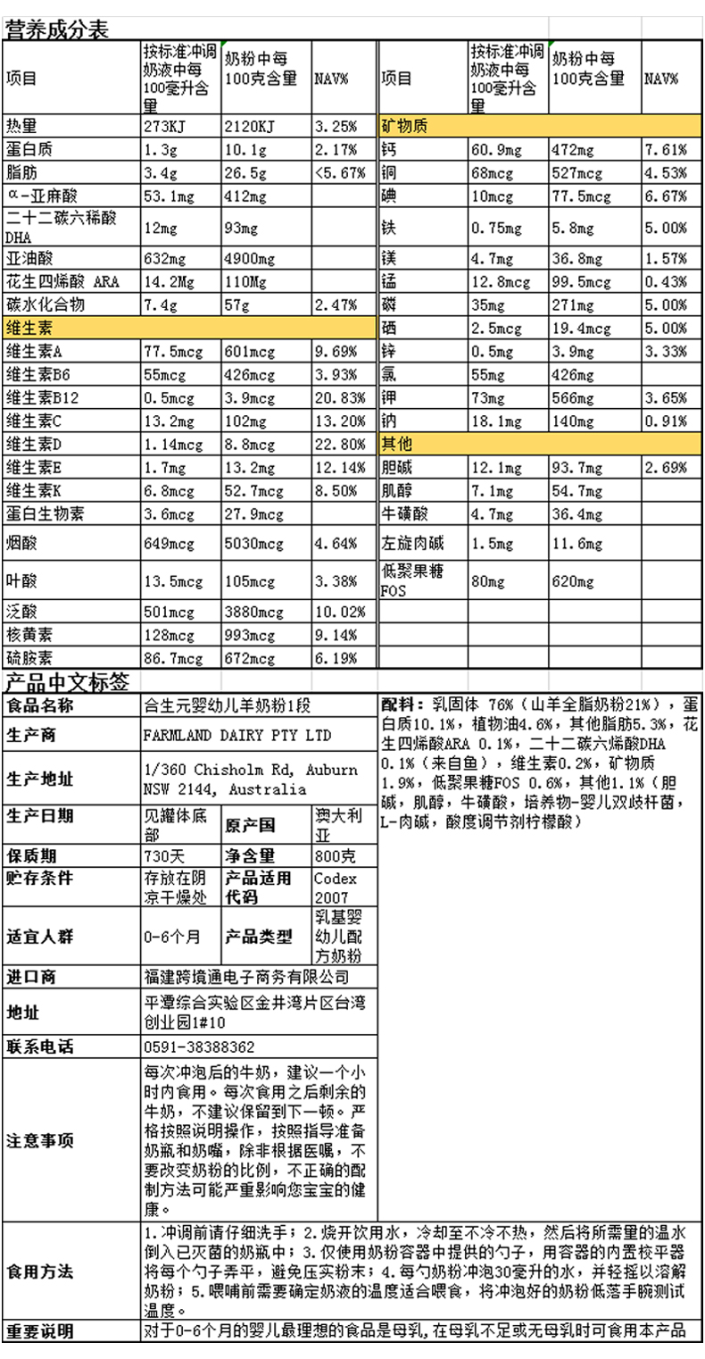 合生元Biostime 澳版金装婴幼儿配方益生菌羊奶粉1段 800g