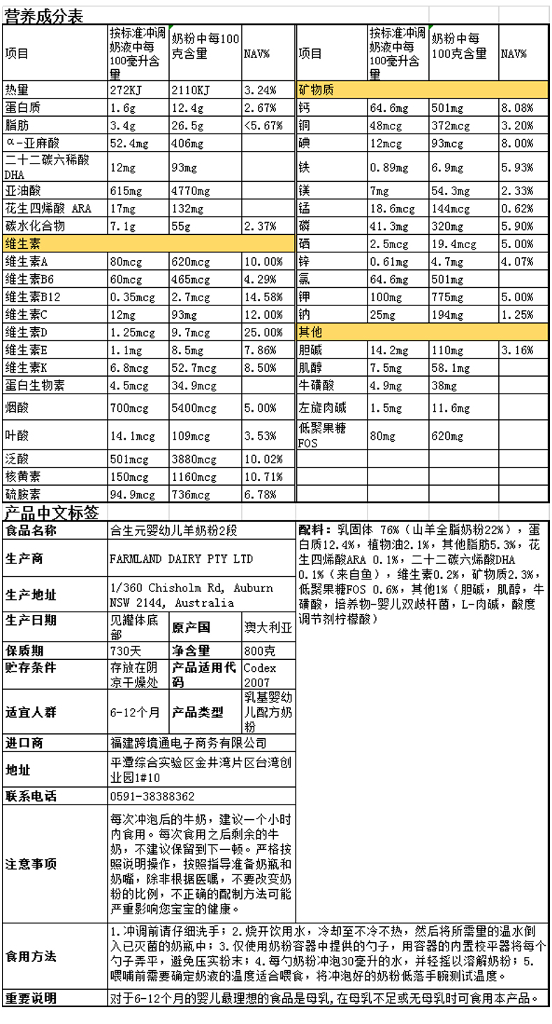 合生元Biostime 澳版金装婴幼儿配方益生菌羊奶粉2段 800g