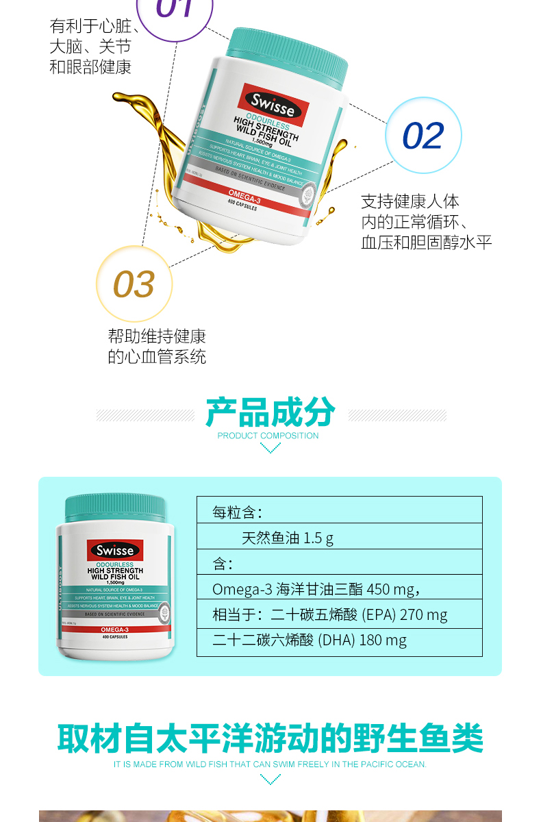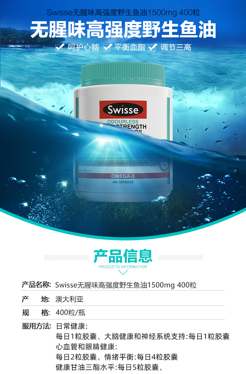 Swisse大豆卵磷脂软胶囊 中老年保健品 血管清道夫1200mg鱼油伴侣 150粒
