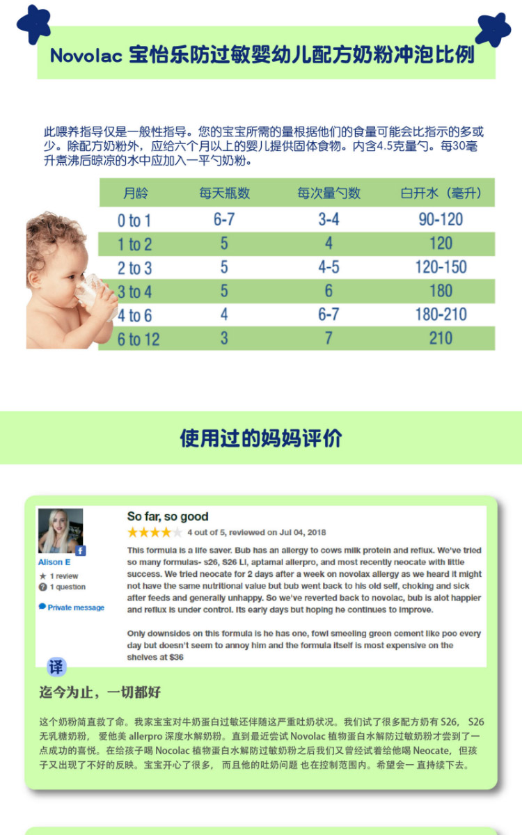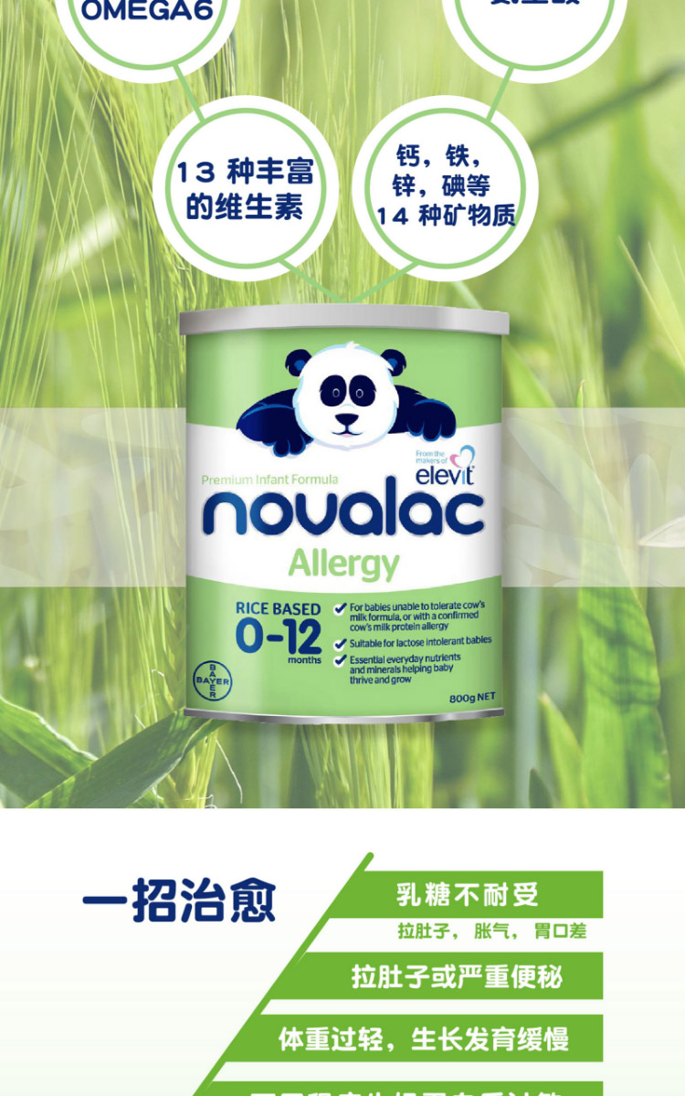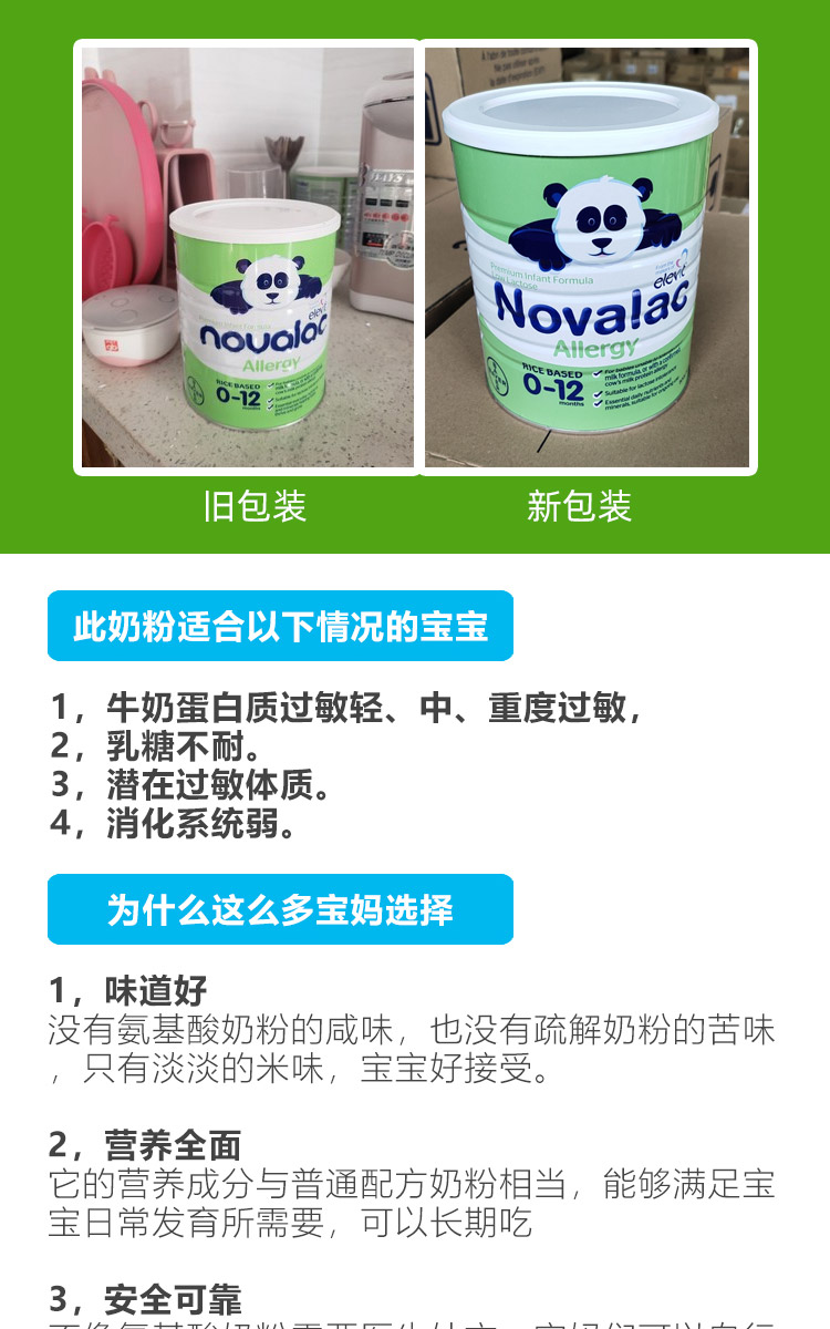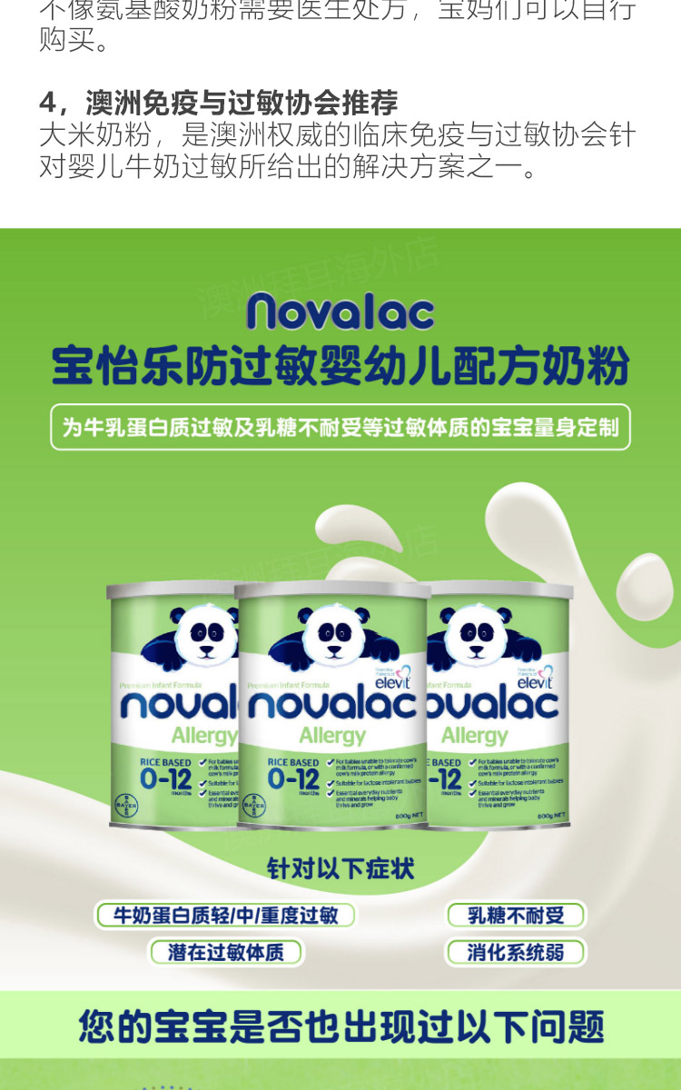 澳洲拜耳Novalac宝怡乐熊猫大米蛋白水解奶粉防过敏腹泻800g