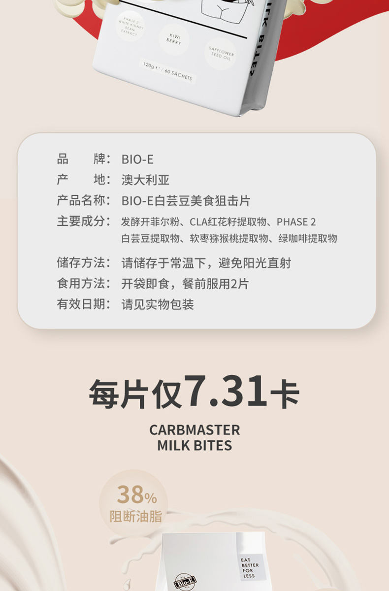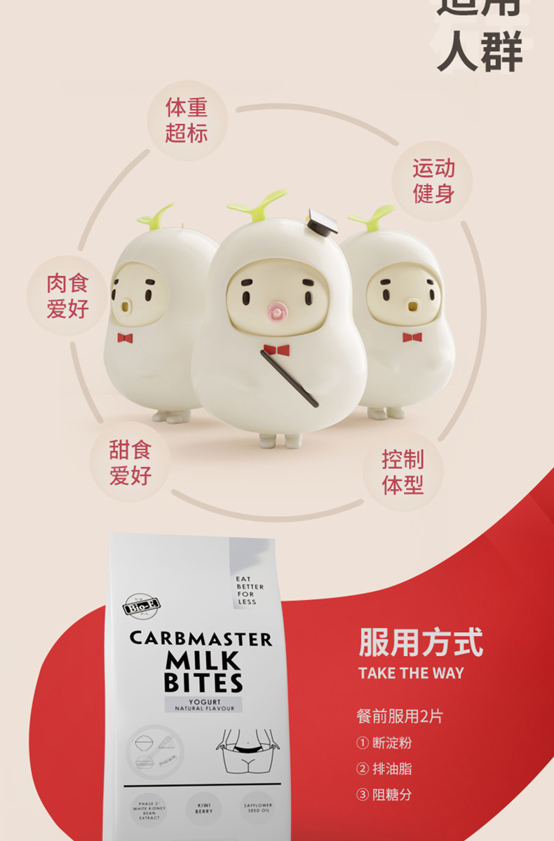 bioe白芸豆酵素片美食阻击片膳食纤维阻断剂清肠排宿便抗糖大餐救星 草莓口味 120g