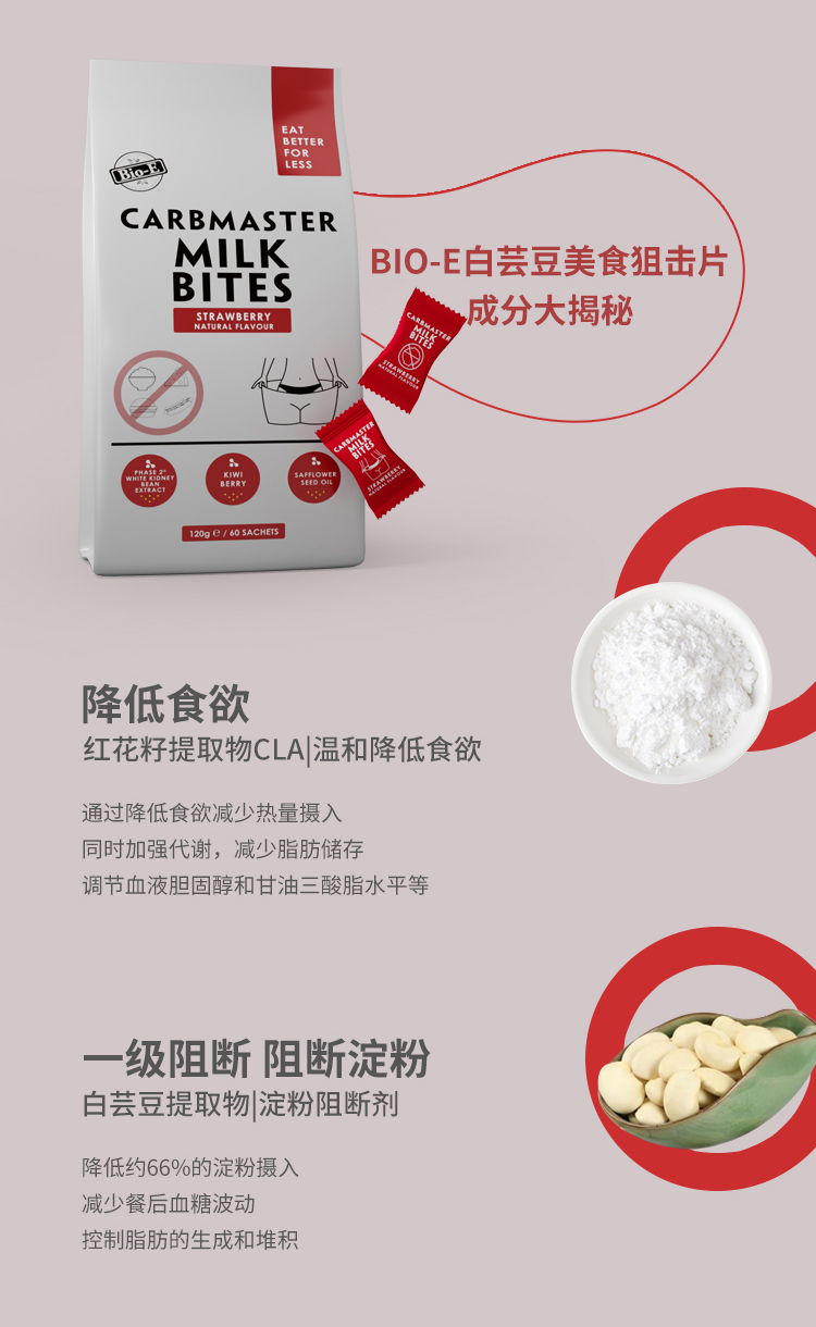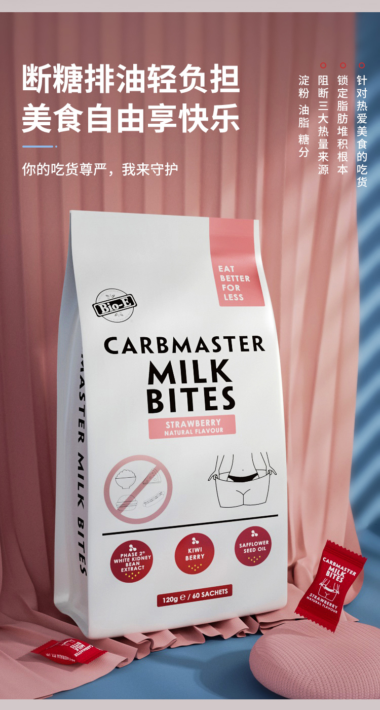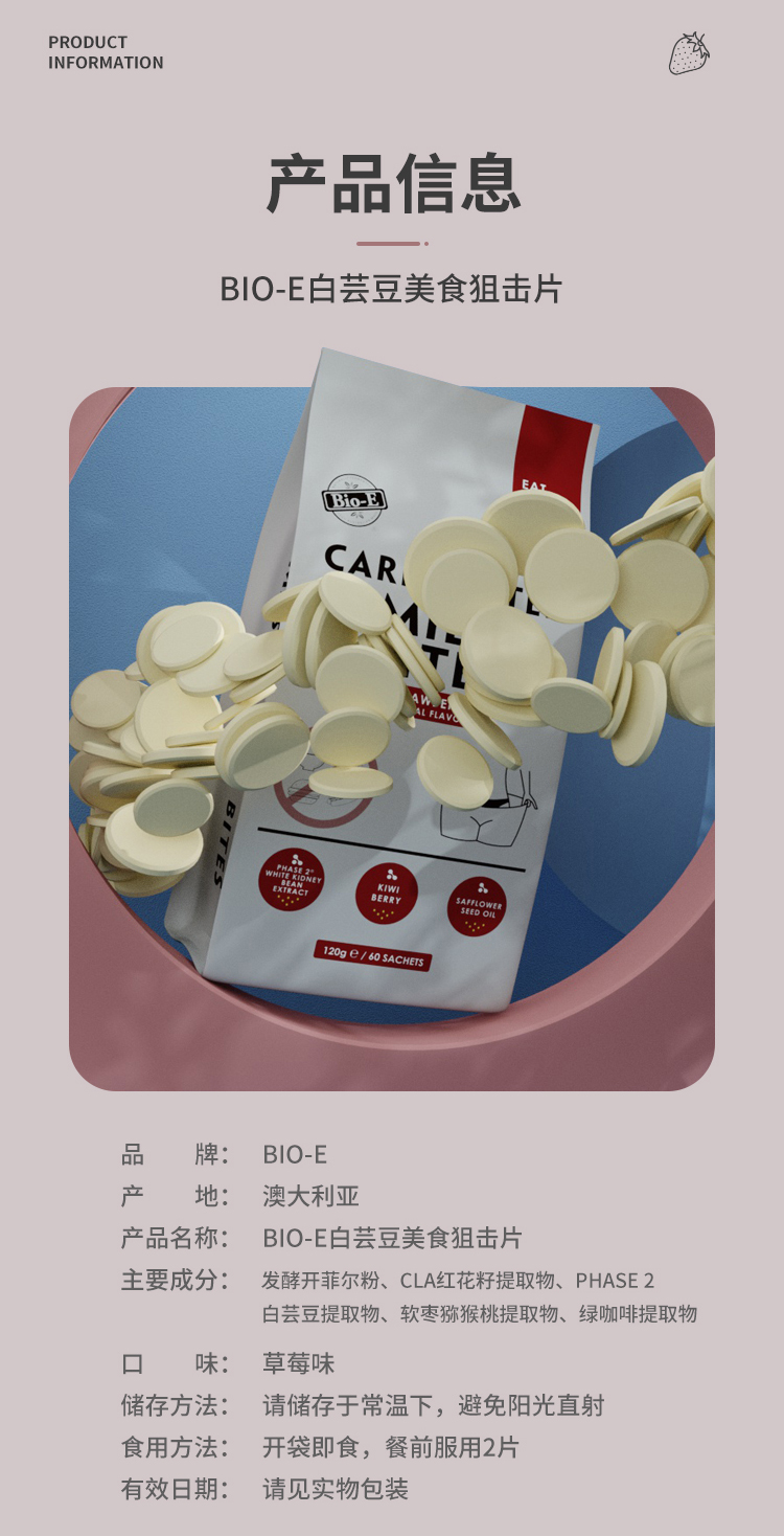 bioe白芸豆酵素片膳食纤维碳水阻断剂美食阻击片清肠排宿便抗糖大餐救星 酸奶味 120g