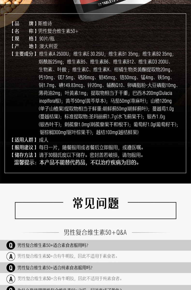 Swisse五十岁以上女性女士复合维生素50+ 90粒