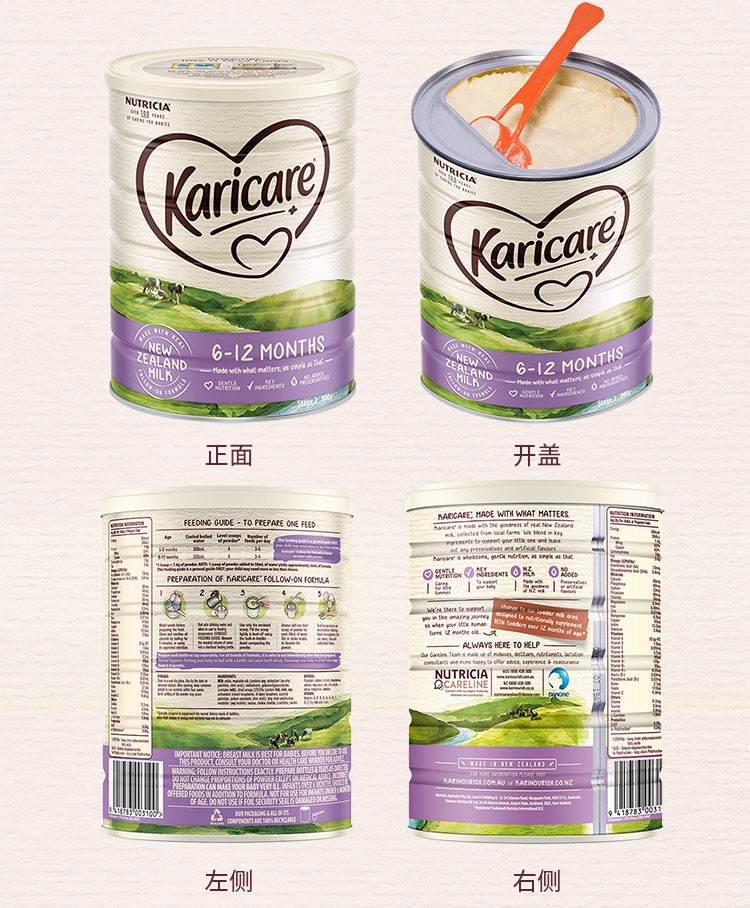 可瑞康(Karicare) 婴儿配方牛奶粉 2段(6-12个月) 900g