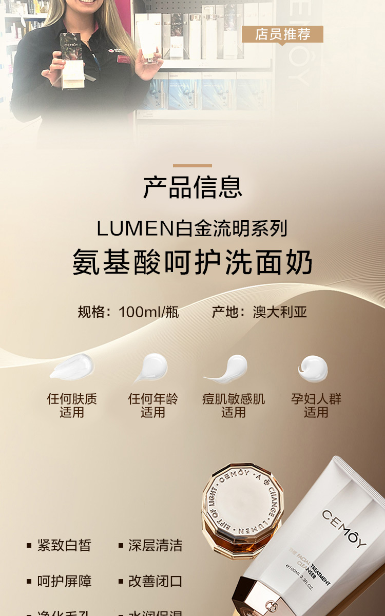 Eaoron氨基酸水光洁面乳 温和补水滋润深层清洁洗面奶100ml