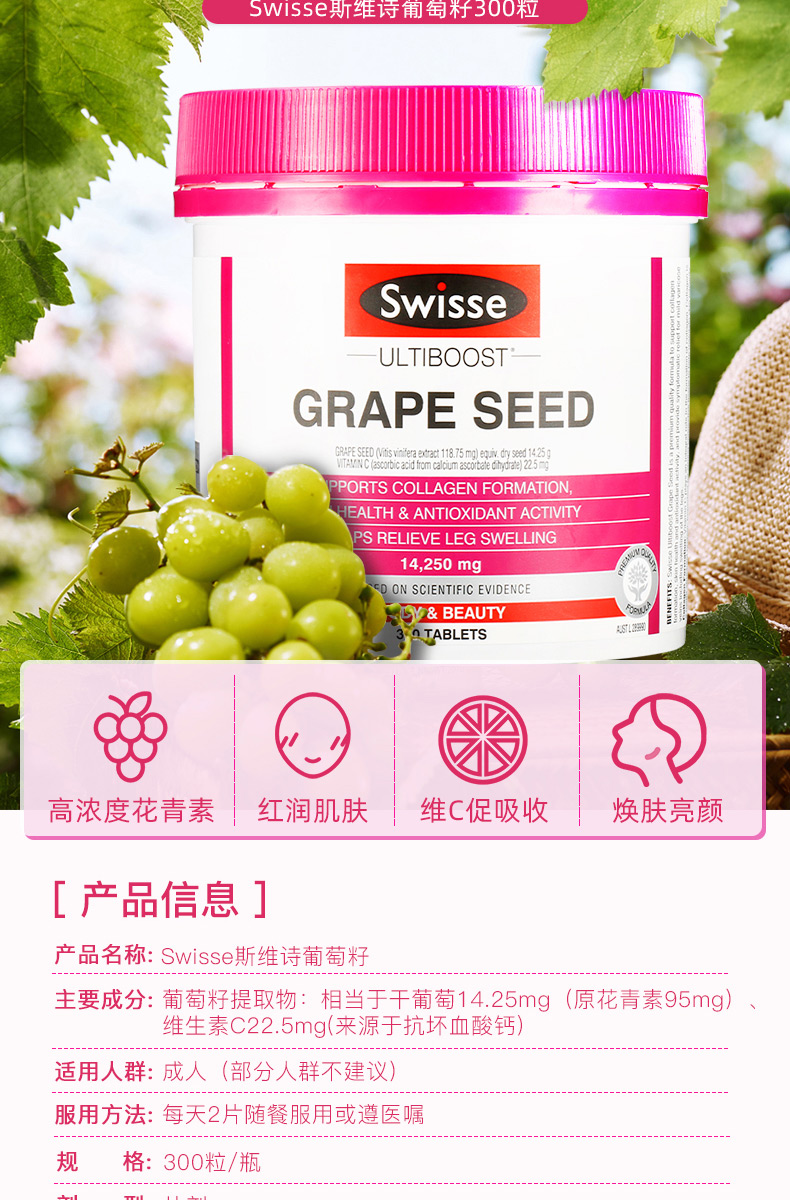 Swisse活力胶原蛋白片 改善肤色减缓脱发保护细胞活性 无腥味100片