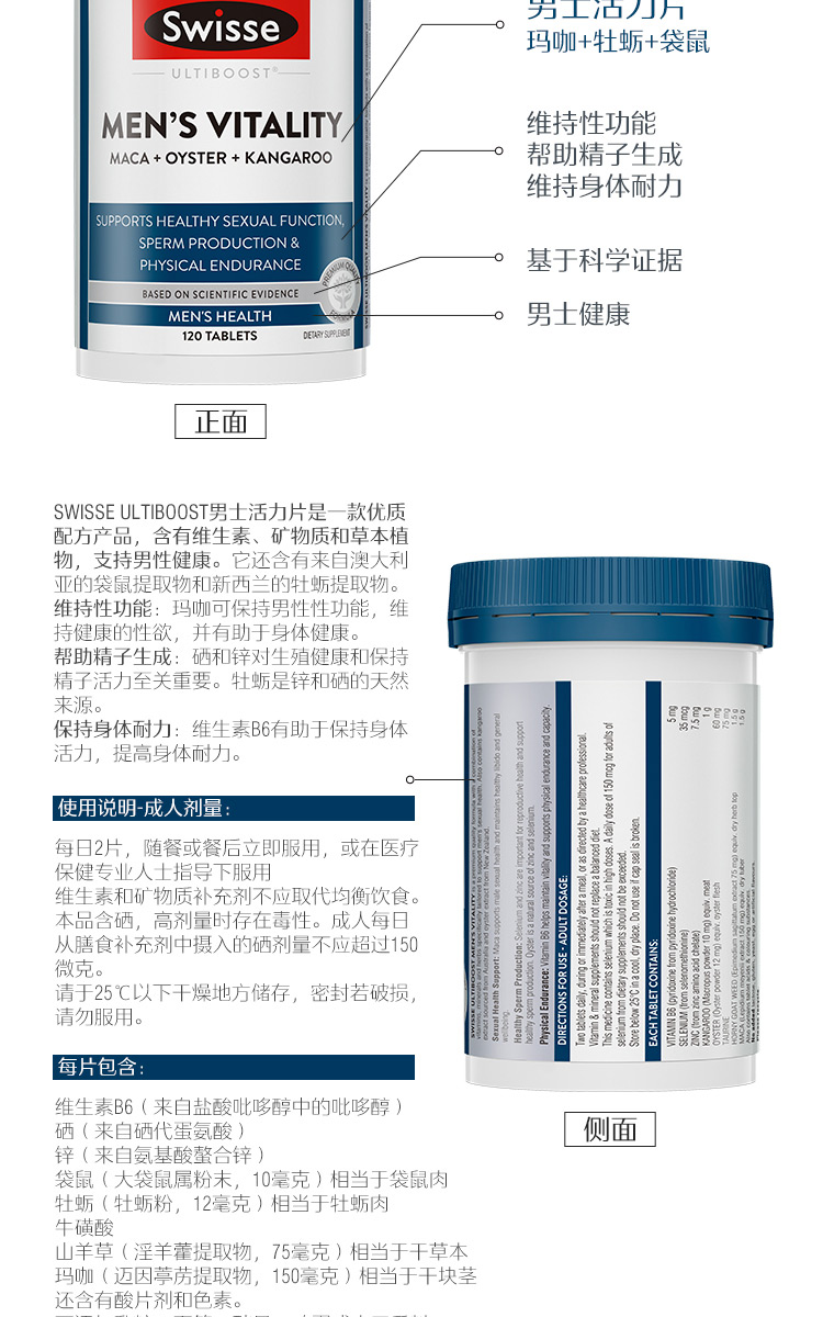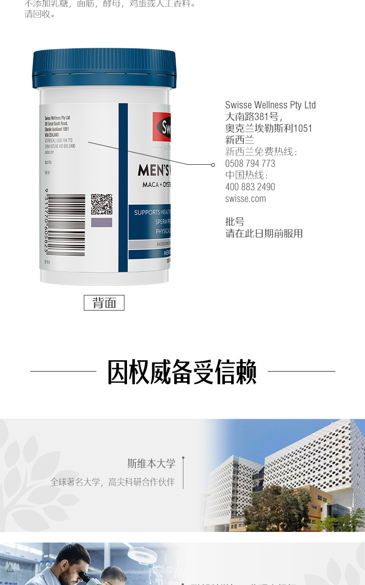 Swisse男士复合维生素多种矿物质提升男性精力活力120粒