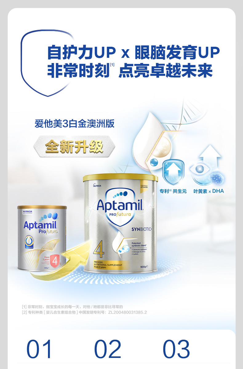 澳洲Aptamil爱他美铂金白金装三段 900g 2021新款