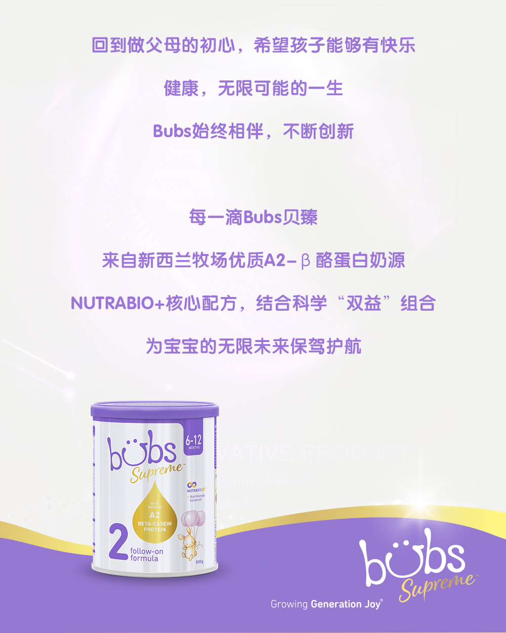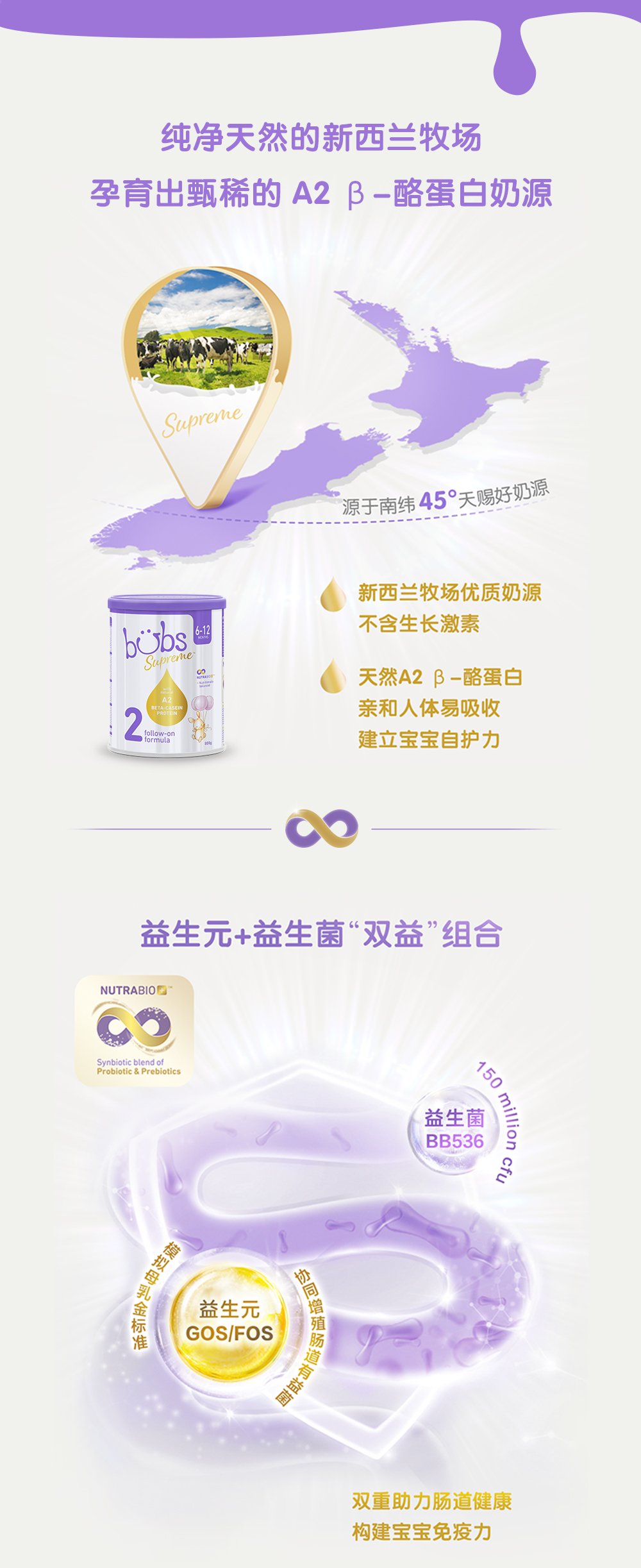 BUBS贝臻 A2β酪蛋白牛奶粉婴幼儿童配方奶粉2段