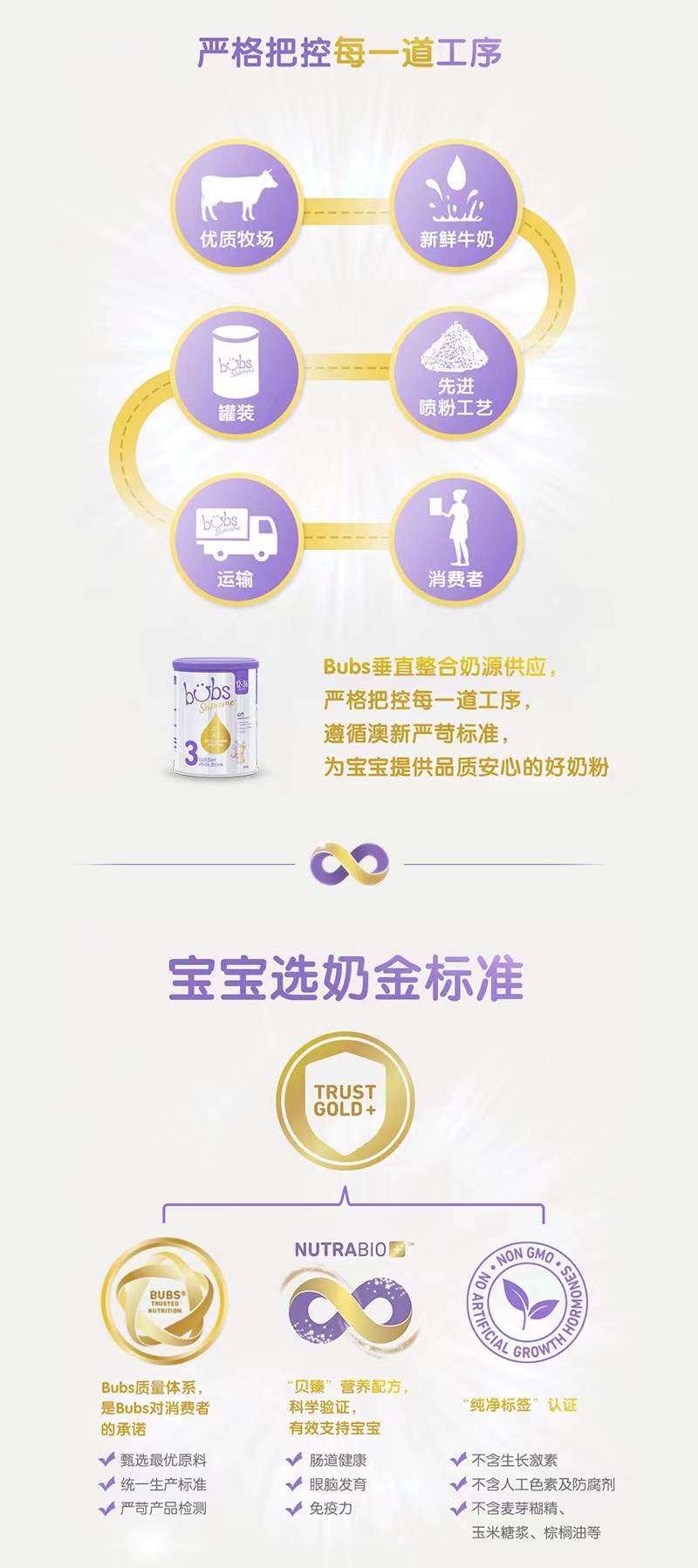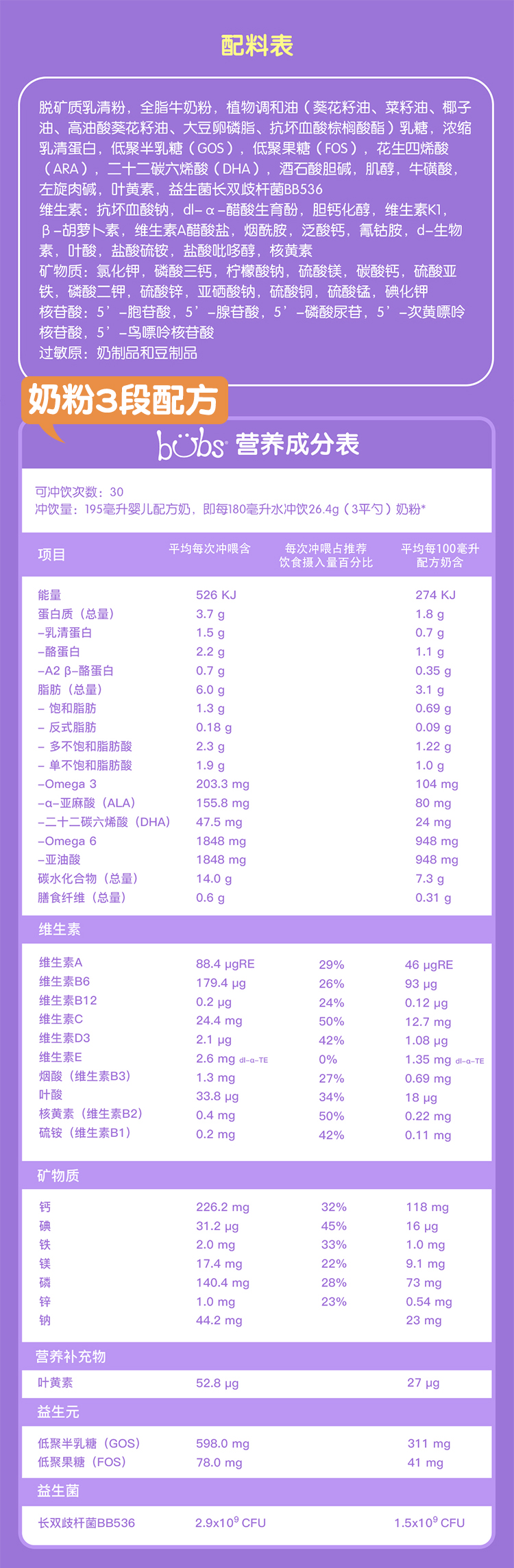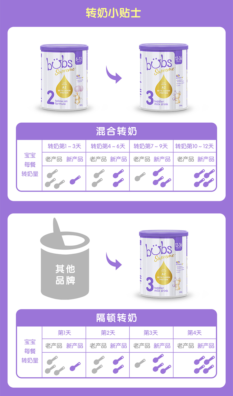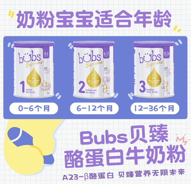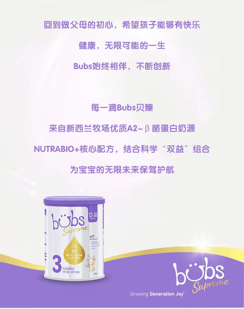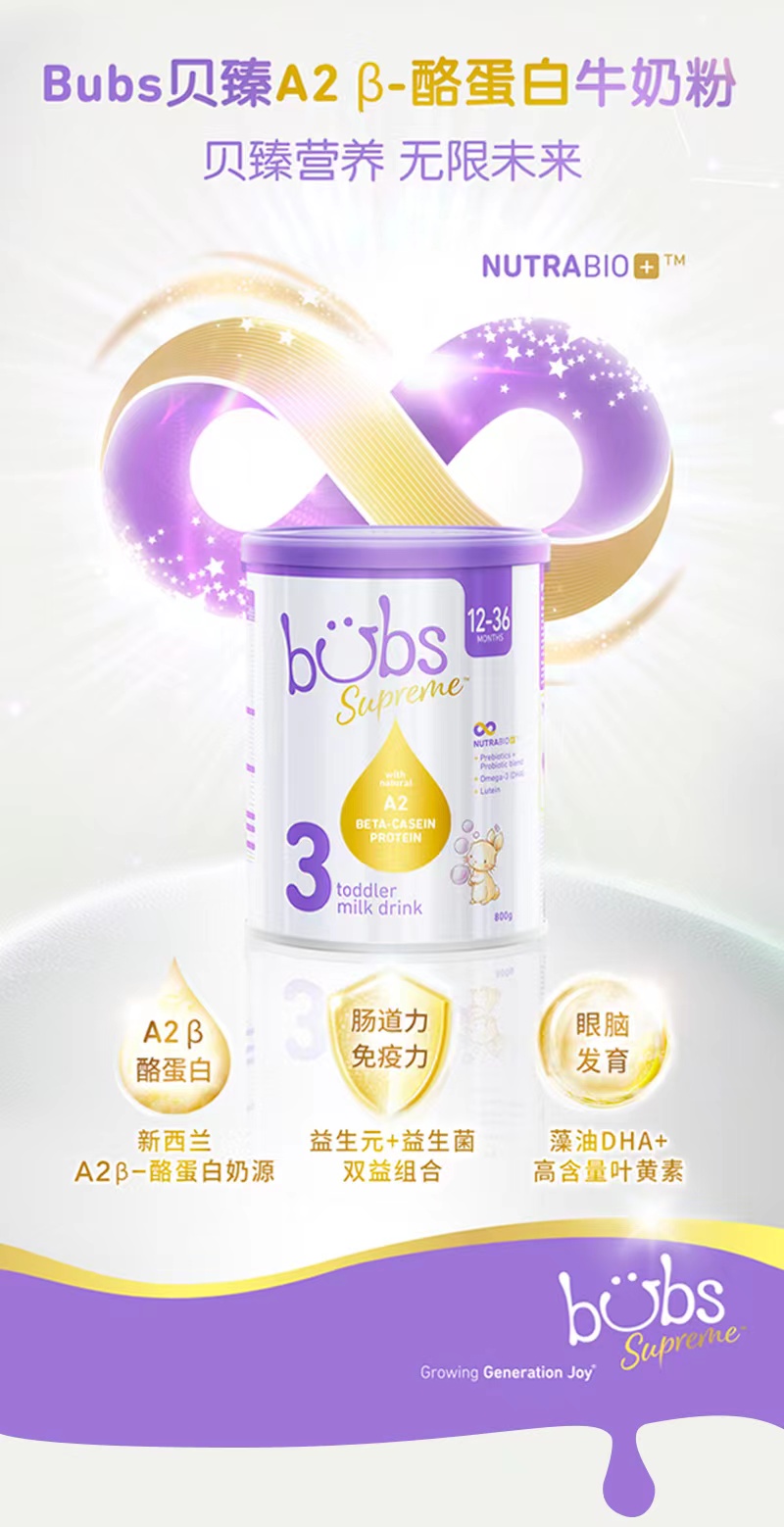 BUBS贝臻 A2β酪蛋白牛奶粉婴幼儿童配方奶粉3段